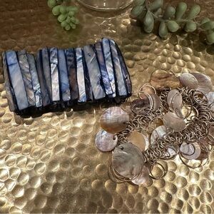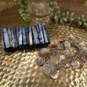 Pair of vintage boho abalone bracelets in EUC elastic expandable