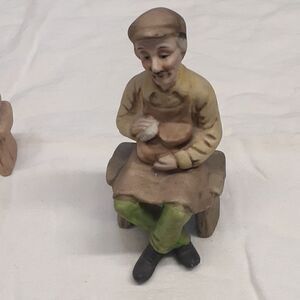 Pair of vintage ceramic figurines: old woman peeling apples and man scrubbing something with a brush. Approxiamatley 5" H X 3" W. Fun accents. Preowned. In great condition. No chips or cracks.