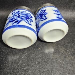 this listing is for this pair of vintage flow blue egg coddlers by Williams Sonoma. could also be used as storage containers for herbs etc.