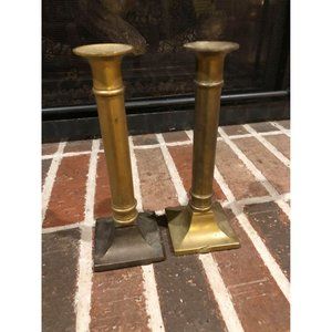 Pair of vintage gold brass candlestick holders 8.75 inches tall each