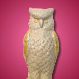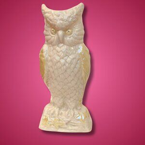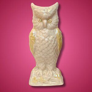 Pair vintage porcelain lusterware Belleek vases cream & yellow owls mint cond.