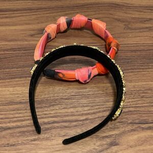 Pair of 2 headbands NWOT. Black velvet with multicolor jewels in Gold-tone setting. Batik fabric orange & pinks