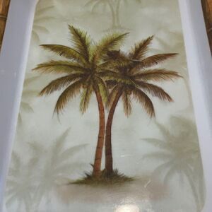 Set of Palm Tree Melamine Trinket trays! Half inch depth with curved bamboo patterned lip. 9”x6.5”. Dishwasher safe. Perfect for keys, trinkets, jewelry! Stocking Stuffer! #coconutgirls #fairykei #vacamode