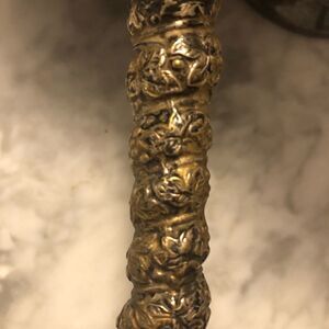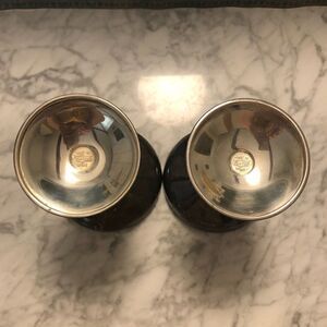 These two goblets are in excellent condition. They are tarnished, but that is to be expected. They have a grapevine pattern on the stem. They are silver plated, and made in Spain.