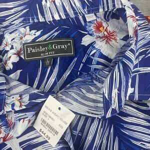 NWT Paisley And Gray Slim Fit Blue Floral Print Button Down Pocket Shirt Men's L