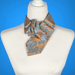 A formal paisley ascot scarf, perfect for weddings. Handcrafted from repurposed silk necktie, it's an eco-friendly and stylish choice for those who appreciate sustainable fashion. This unique accessory adds a touch of elegance and individuality to your attire.