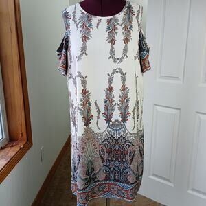 Paisley Cream Cold Shoulder Dress 2XL lightweight midi shift unbranded polyester
