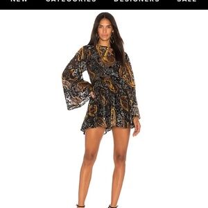 Open back, flowy sleeves, velvet playsuit. Lioness brand in size medium. Perfect for fall!