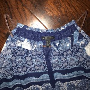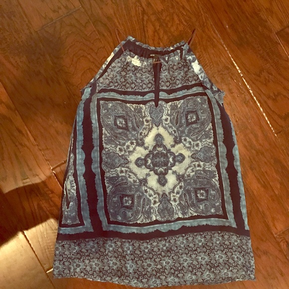 Paisley pattern. Loose fitting. Brown braided straps. Size Small but fits like a Medium