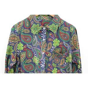Paisley Floral Button Down Shirt Boho Hippie Maximalist Retro Layering Size XL