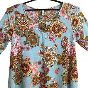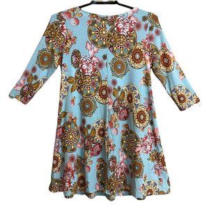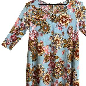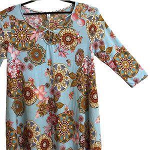 Paisley Grace Women Medium 3/4 Sleeve Dress Multicolor Floral Teal Pink Shift