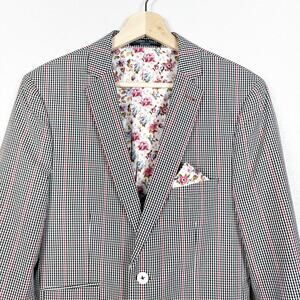 Paisley & Gray Mens Dover Notch Slim Fit Blazer Suit Jacket Black Red Check 40R