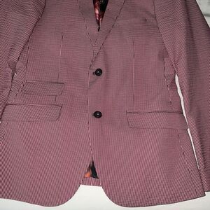 Paisley & Gray Men's Slim Fit Seersucker Blazer Two Button Red White Striped 38R