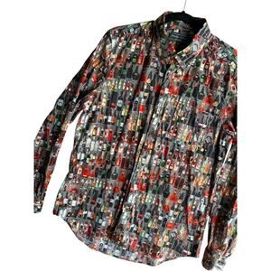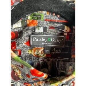 Paisley & Gray Slim Fit Men's Funky Shirt Long Sleeve Wine Print Size Large NEW
