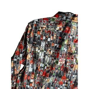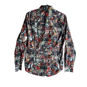 The Paisley & Gray Slim Fit Men's Funky Shirt in size Large features a wine print graphic on a multicolor background, making it a stylish and unique choice for various occasions such as casual outings or parties. This button-up shirt has a collared neckline and long sleeves, crafted from a blend of spandex and cotton for comfort and breathability. The vintage-inspired design, along with its easy care and machine washable fabric, make it a versatile option for all seasons. Perfect for men looking to add a touch of designer flair to their wardrobe with a playful and colorful statement piece.
