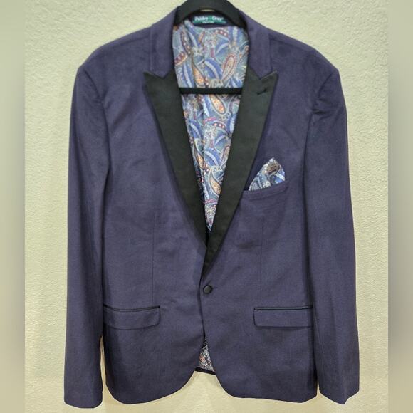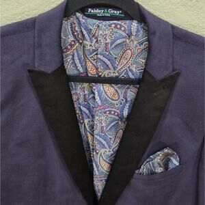 Paisley & Gray Slim Fit Purple Blazer with Black Lapel 44R