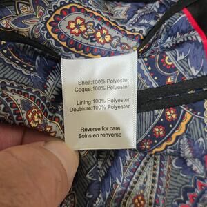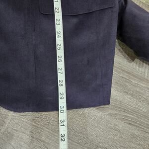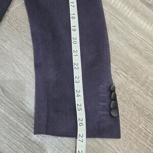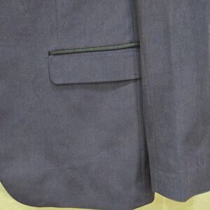 Stylish purple blazer with a contrasting black lapel. Features a paisley inner lining. Ideal for formal events.