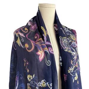 Navy Paisley Pashmina, Scarf, Shawl, Floral, Delicate, Sheer, Feminine, Multifunction, Multiple Ways to Wear, Cotton, OS, Multicolor, purple, Horsemanship, Bit & Bridle Print, Chainlink Print, Equestrian, Old Money, Horse, Wearable Art, Art-to-Wear, Eclectic, Classic