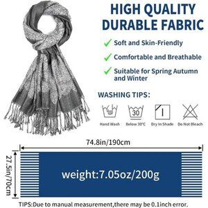 Pashminas shawls and wraps is double-sided wearable design, the different colors of the two sides add more choices for your matching. The exquisite and unique jacquard details are exotic, very elegant and sophisticated, which will show off your fashionable taste whether it is for daily wear or special occasions. In addition, this pashmina wrap is also ideal as a luxurious and thoughtful gift for your mother, wife or girlfriend on Christmas, birthday or anniversary