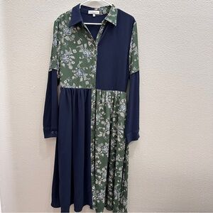 Paisley Patchwork Dress Midi/maxi Medium Pamela Love Navy Green Long Modest Fall