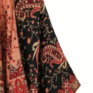 Paisley Pattern Fringe Trim Batwing Sleeve Duster Cardigan multi color