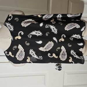 Chic sleeveless top featuring a stylish paisley print on a dark navy background. Perfect for casual outings or a day at the office. Size LP. pit to pit flat measurement is 21". The top to bottom length is 24". Very good used condition and quality. Consider making a bundle and get an even better offer.