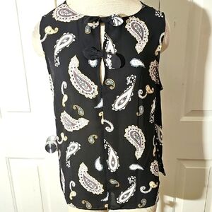 Paisley Print Navy Blue Sleeveless Top. By Loft. Large P. 2 little Bows In Back.