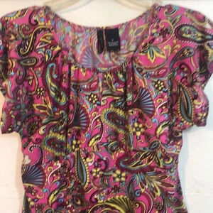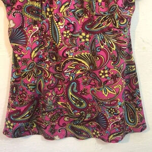 Paisley Print Short Sleeve Blouse Pink Yellow Pattern Top