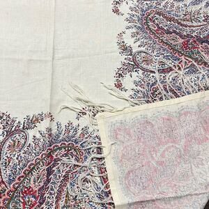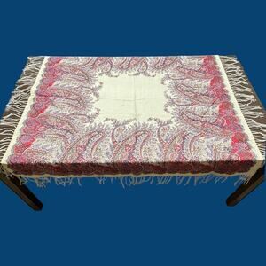 Pottery Barn Multicolor Paisley Print Tablecloth w/ Fringe Cotton/Linen 50 x 50"