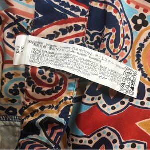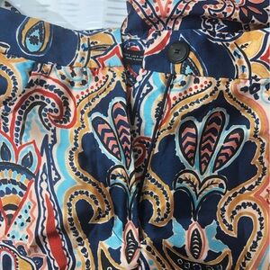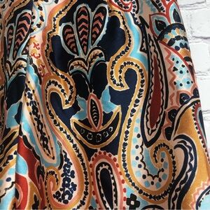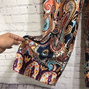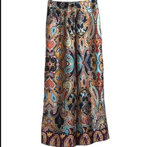 Elevate your style with these vibrant paisley print wide-leg pants. Perfect for any occasion, these pants feature a stunning mix of orange, blue, and black hues. Pair them with your favorite top for a chic look.