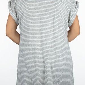 An easy knit draped top with a split side hem that can be worn as is, or knotted to one side. It also has rolled hem sleeves and gorgeous stitch details. Size down for a more fitted look. This is flowy and loose-fitting.