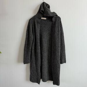 Paisley Road | Women’s Long Charcoal Grey Alpaca Blend Hooded Cardigan Sweater M