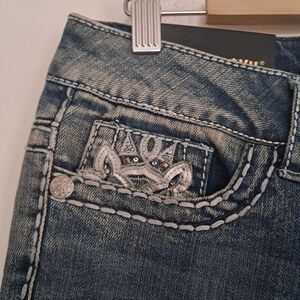 Paisley Sky jeans women's 6 light wash faded embelished y2k glam rhinestones