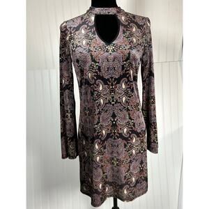Paisley Velvet Chocker Shift Dress Xhileration Boho whimsy Goth witchy artsy XS purple, colorful