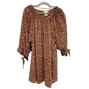 Paisley Vine boho style dress in a brown and white animal print. With a scoop neck and ties on sleeves for a feminine touch. Excellent used condition. Smoke free, dog friendly home.