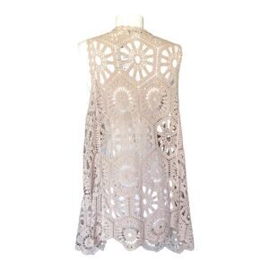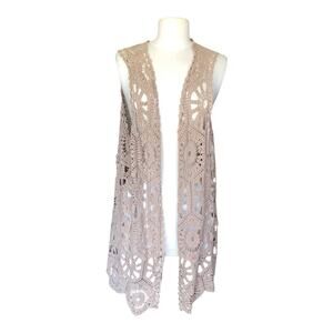 Paisley Vine By Sassy Bling Mocha Open Front Vest Cardigan Women's One Size NWT