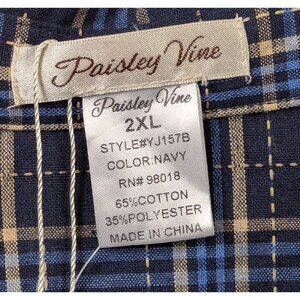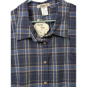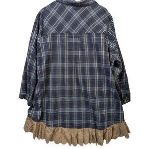 Paisley Vine Women Plus 2XL Plaid Long Sleeve Eyelet Ruffle Lace Shirt Button Up