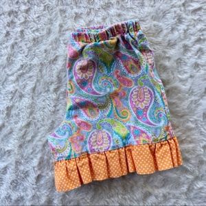 I ship same or next day Monday through Friday ๐ These little girls shorts are the sweetest! Handmade with love, they feature and elastic waistband and adorable orange ruffle around the hems. Flat measurements: Waist 8โ Length 9โ Rise 7.5โ Inseam 3โ Leg width 7.5โ Condition: like new! Smoke and pet free home. Thank you for supporting sustainable fashion!