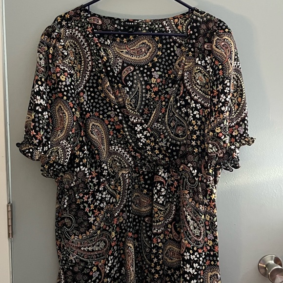 This is a torrid blouse, size 3. Has a beautiful paisley print.