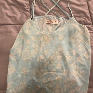 Hollister small light blue and white paisley pattern strappy back tang top