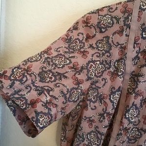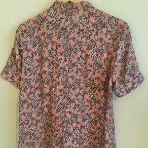 I Love Ronson pink Paisley top, 100% Cotton, sheer fabric, beautiful paisley blue design, partly button down in the front