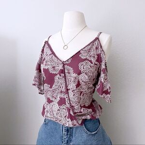 Charlotte Russe purple paisley cold shoulder top. Stretchy / elastic hem. V neckline. Size small. Approximate measurements as follow: Chest - 18.5". Length - 20". Hem - 15". Please ask questions, I want you to be a satisfied shopper ✨ Price is not set, don’t be afraid to offer. Happy shopping!