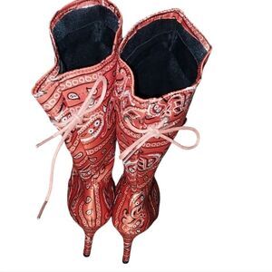 Paisley scarf printed stiletto boots sz 8 Orange red very sexy and comfortable.