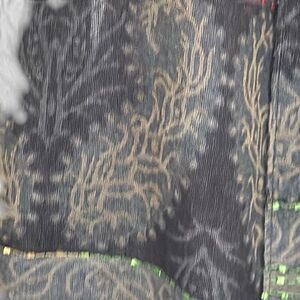 Description: paisley scarf with rainbow stitching and fringe