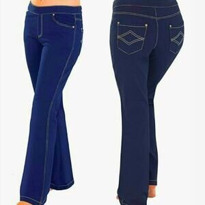 Pajama Jeans Bootcut Mid Rise Terry Stretch Pullon Drawstring Jeans Size L Blue