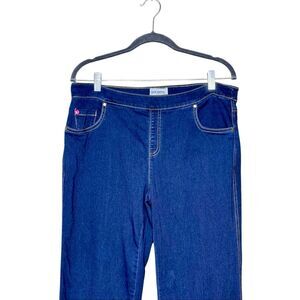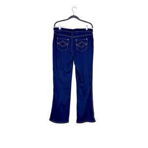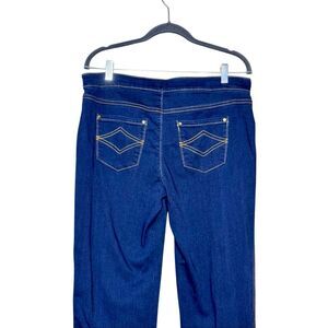 Pajama Jeans dark wash boot cut size L. Style 109917. Inner drawstring. Front and back pockets. Lots of stretch and comfort. EUC. 38% rayon 34% cotton 26% polyester 2% spandex.