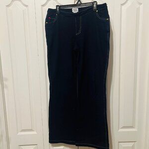 Pajama Jeans-Pull On Women's Drawstring Waist Dark Blue Wash Stretch Pants-Sz Lg