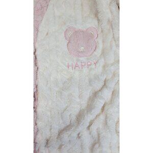 Pajama Lounge Set Soft Pink White Button Top Happy Bear Womens Large New In Bag