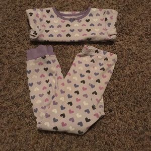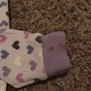 Adorable and insulating waffle pajamas. Lightly worn. Well loved. There is a small stain on the cuff of the leg. 80% cotton 20% polyester Machine washable