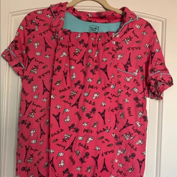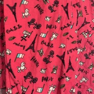 Pink pajama set with a Paris theme. I’ve only worn this once for Christmas. Both the top and bottoms are size large. This is cross posted on other sites so make sure you grab this before it’s gone.